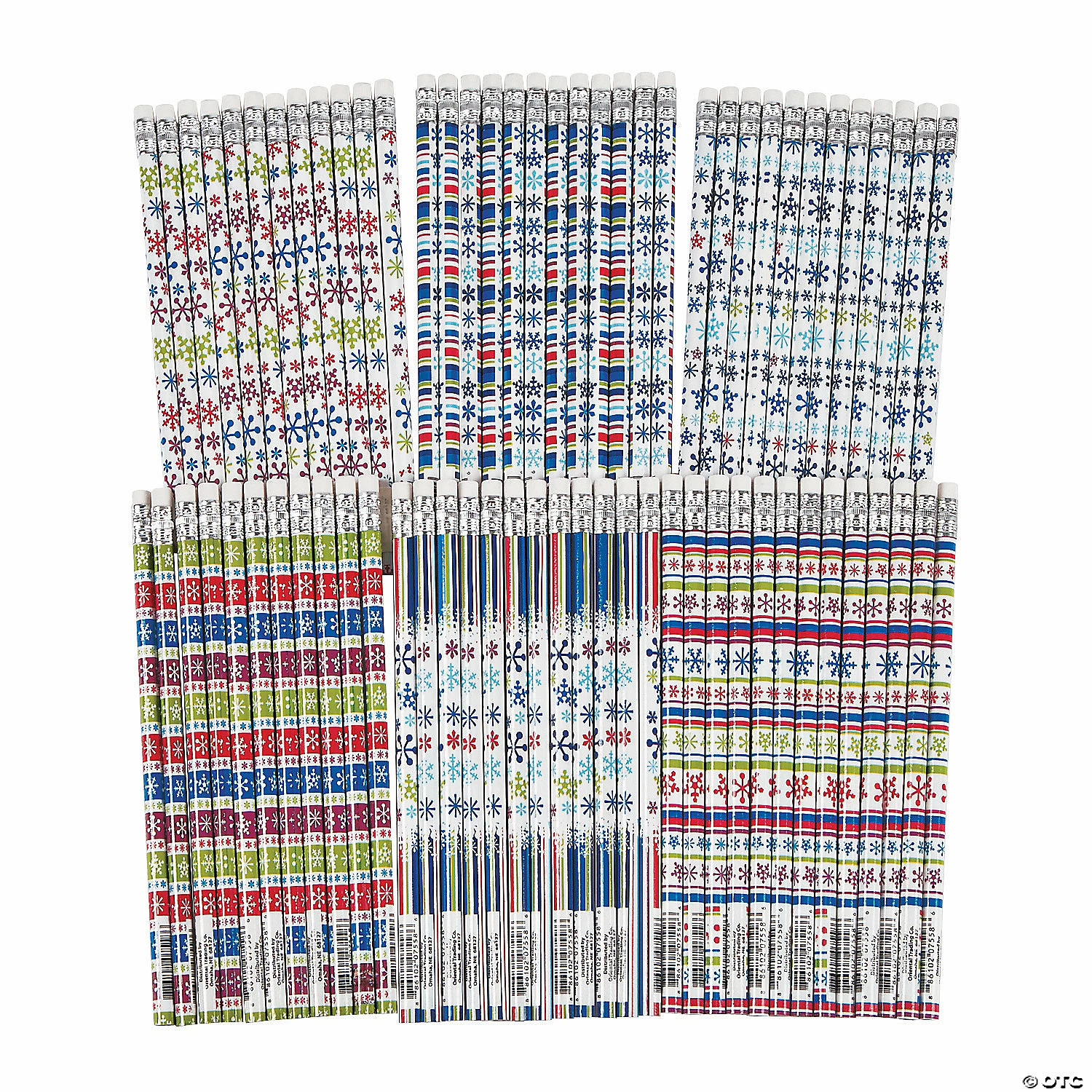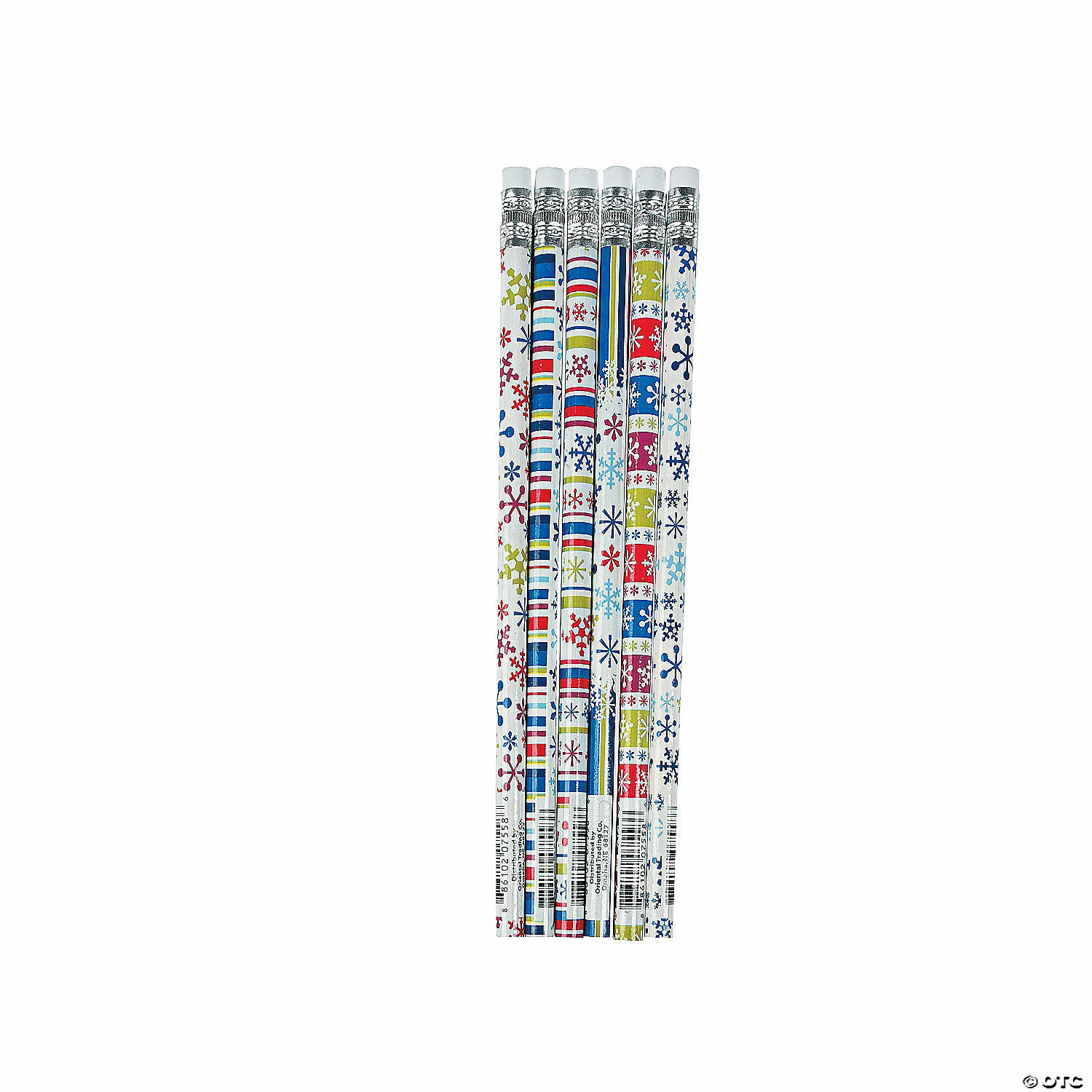 Give a Christmas party favor as unique as a snowflake with this Bright Winter Pencil Assortment. Decorated with snowflakes and festive holiday patterns, these pencils are a flurry of holiday fun at home or as classroom gifts. Wood. (6 dozen per unit) 7 1/2″ Assortment may vary. Β© OTC
