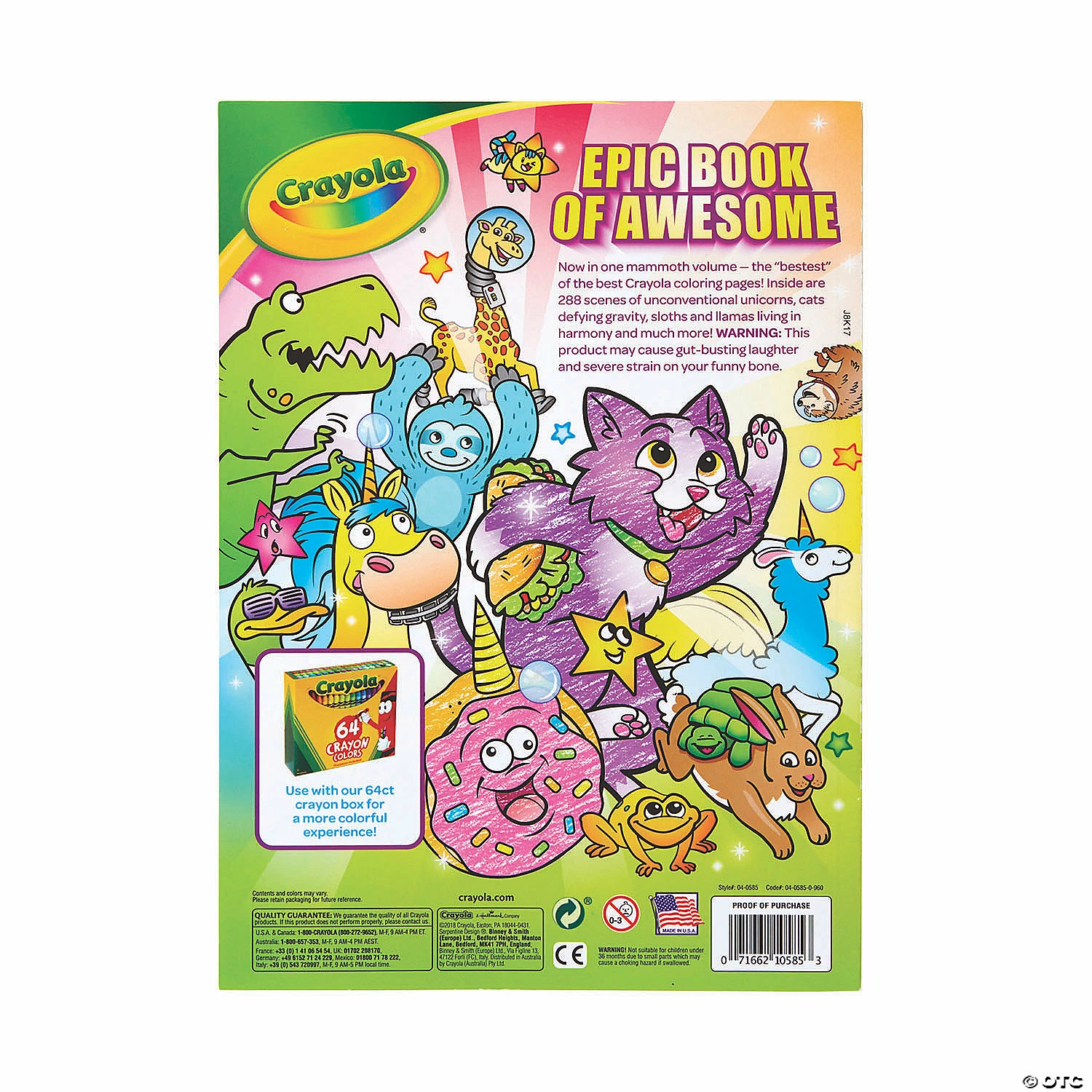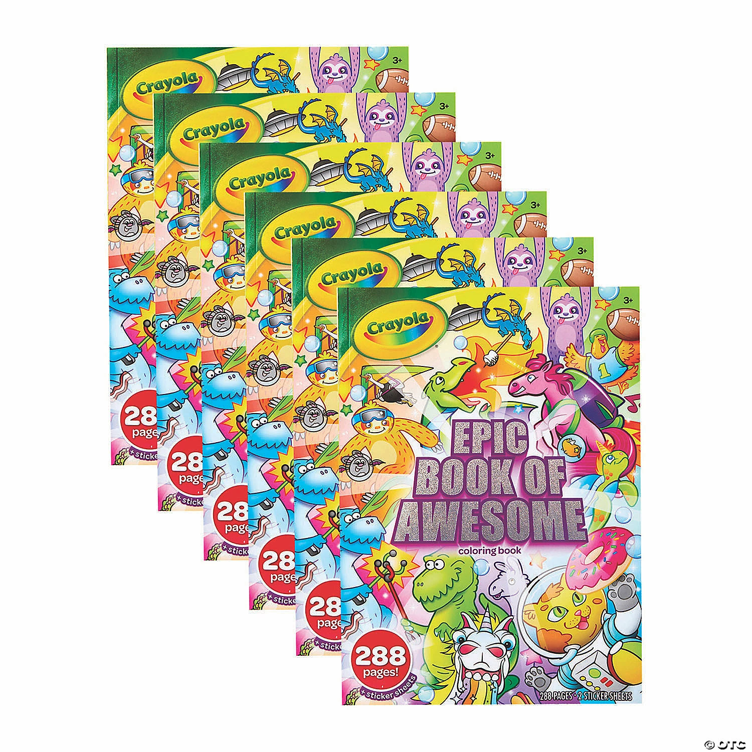 Presenting a colossal collection of coloring pages from Crayola! Each 288-page tome offers the best of Crayola Uni-Creatures, Sloths Love Llamas, Squad Goals, and Cosmic Cats coloring books in one huge volume, as well as 2 sticker sheets so kids can deck out their coloring art even more. This giant-size book is the perfect travel companion for long tripsβwith hours and hours of creative, entertaining activities for your little traveling companions. Also makes a great gift for all occasions. For an extra-special surprise, pair with the Crayola Ultimate Crayon Collection. Ideal for kids, age 3 and up. Sold as a pack of 6 identical coloring books. Special Shipping Information: This item ships separately from other items in your order. This item cannot ship to a P.O. Box. This item may be subject to additional processing days. ITEM IS NOT ELIGIBLE FOR EXPEDITED SHIPPING