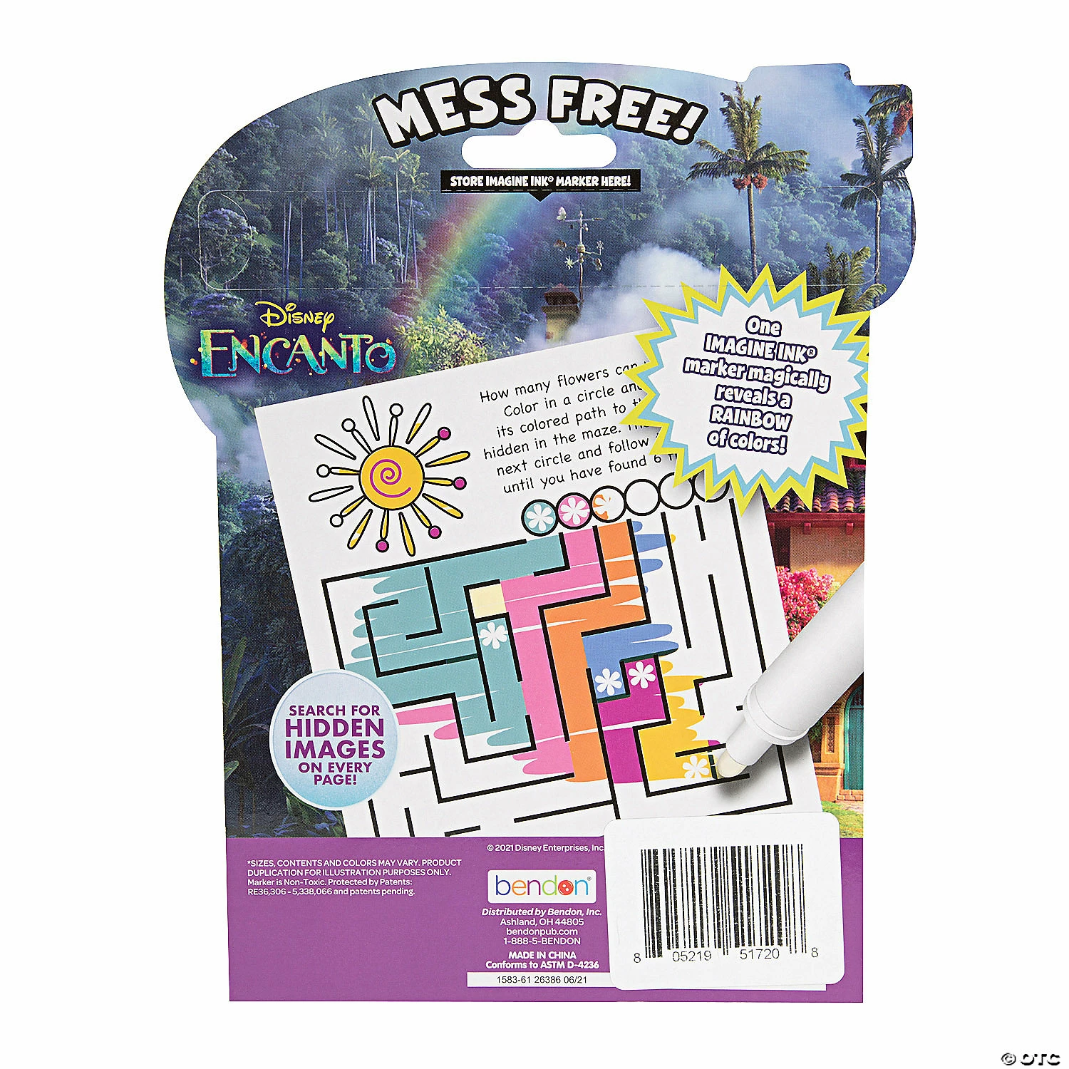 Reveal a rainbow of colors on every page with this magical activity pad! Your little artist will love coloring their favorite Encanto characters and finding hidden images using the special Imagine Ink marker. Filled with miniature games like mazes and word search puzzles, this activity book is a fun gift, birthday party favor or everyday stationery book for home. Plus, you’ll love the magic of mess-free coloring! Safe and non-toxic. Paper. 6 1/4″ x 8″ 20 pgs. Conforms to ASTM D-4236. Β© Disney