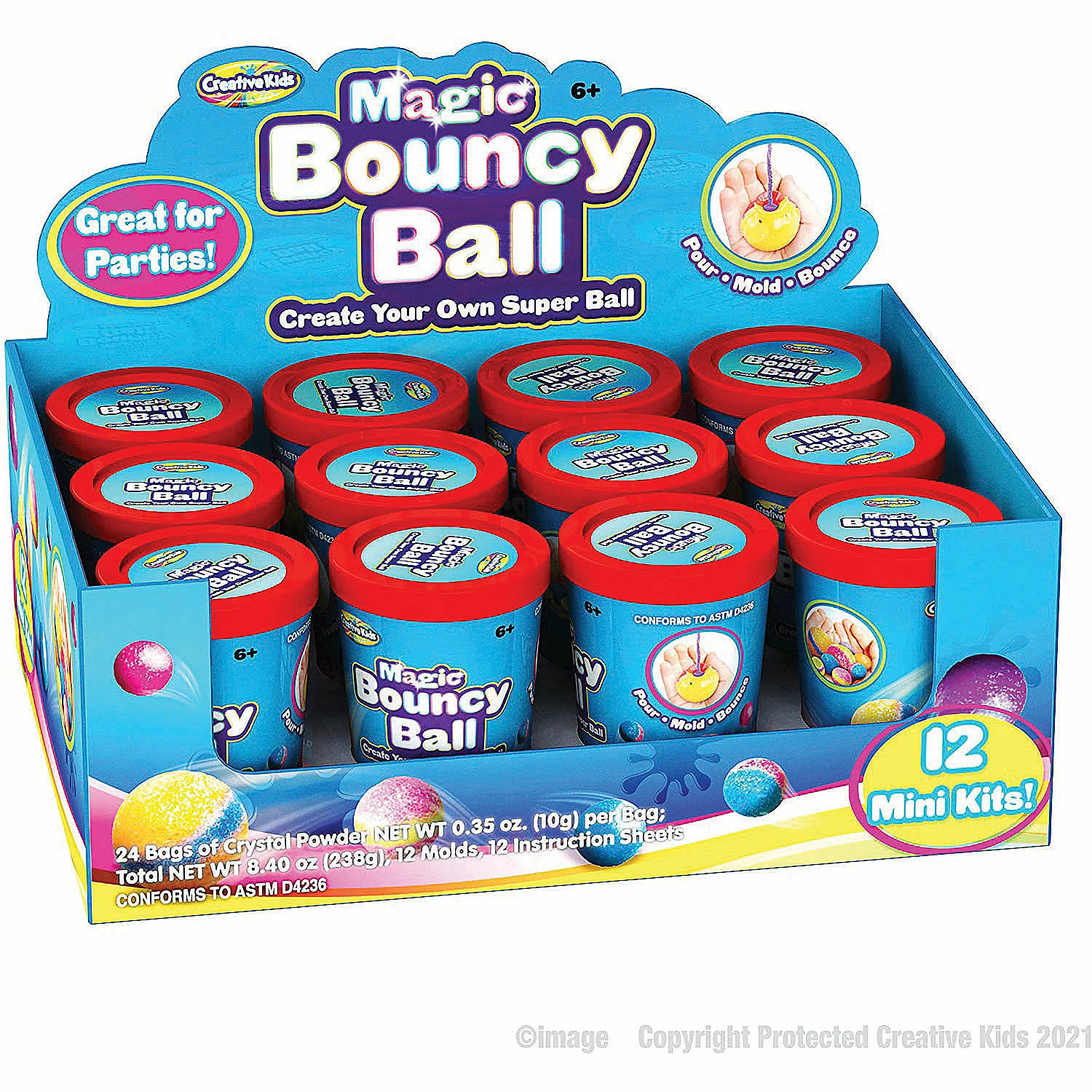 Everything You Need Is In The Kit: our bounce ball kit provides 12 cups with all the necessary crystal powders, molds, and instructions to make your own ball! Included as well, are various color shades for unique party favors crafts!