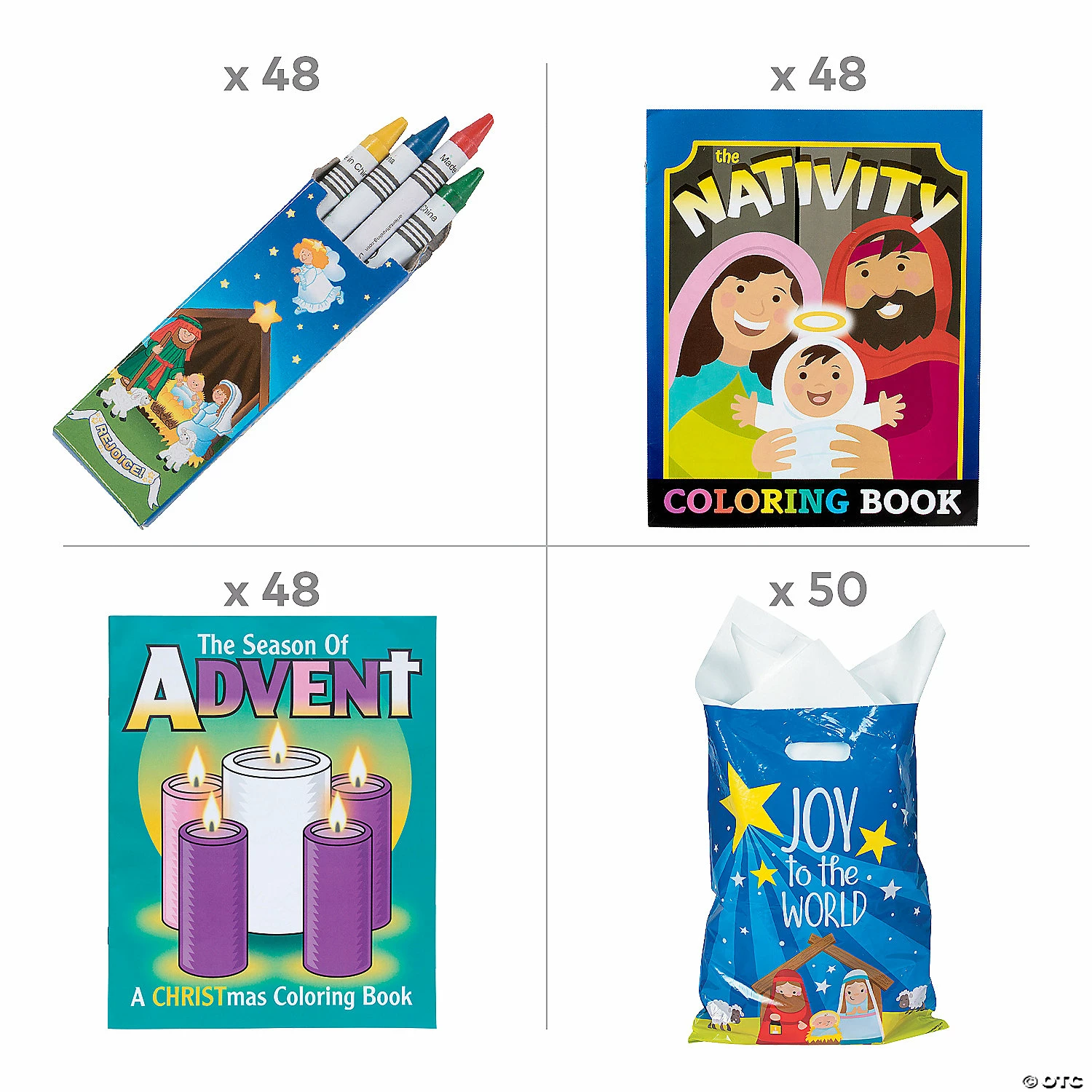 Get creative this Christmas season! These coloring book handouts make great Christmas party favors for home, Sunday School or church events. Complete with religious coloring books and crayons, kids will not only get some imaginative play time but a reminder of the real reason for the season! (194 pcs. per unit) Assortment may vary.Includes:β’ 48 Paper The Season of Advent Coloring Books (8″ x 10″ 12 pgs.)β’ 48 Boxes of 4-Color Nativity Crayons (Safe and non-toxic. 3 1/2″ Conforms to ASTM D-4236.)β’ 48 Paper Nativity Coloring Books (8″ x 10″ 12 pgs.)β’ 50 Plastic Large Nativity Goody Bags (12 1/2″ x 17″)