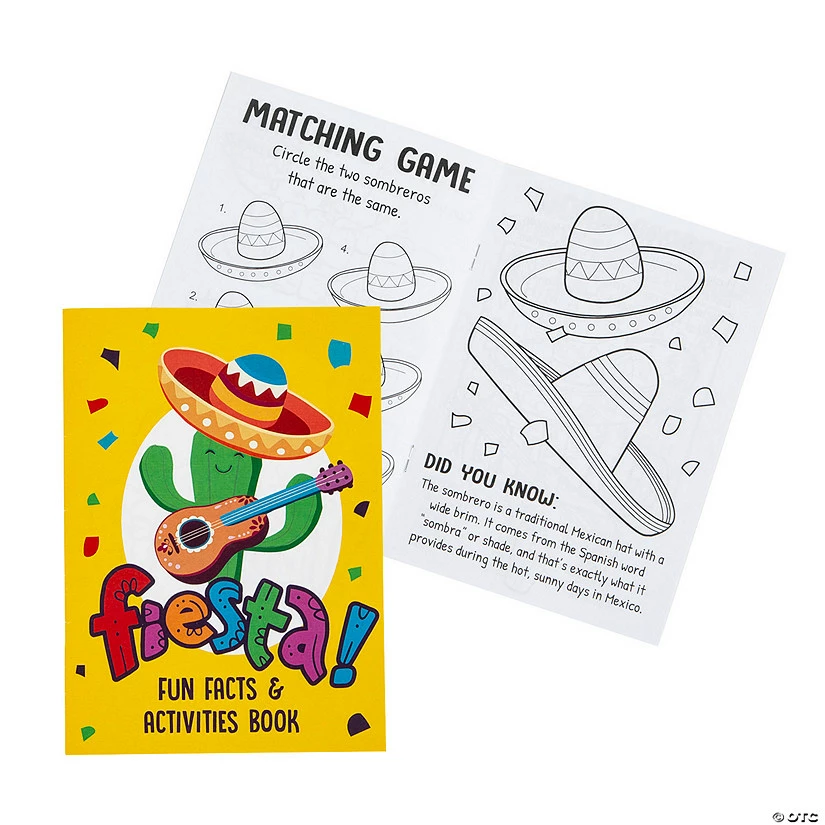 Help kids learn fun facts about fiestas while entertaining them with fun games and puzzles in this activity book. A fantastic choice for a kidsβ fiesta party favor, these activity books include coloring sheets, word puzzles, mazes and more alongside fun historical facts about fiestas. Hand these out at a Cinco de Mayo celebration or distribute them in the classroom as rewards or prizes. Paper. 5″ x 7″ 12 pgs. Β© OTC