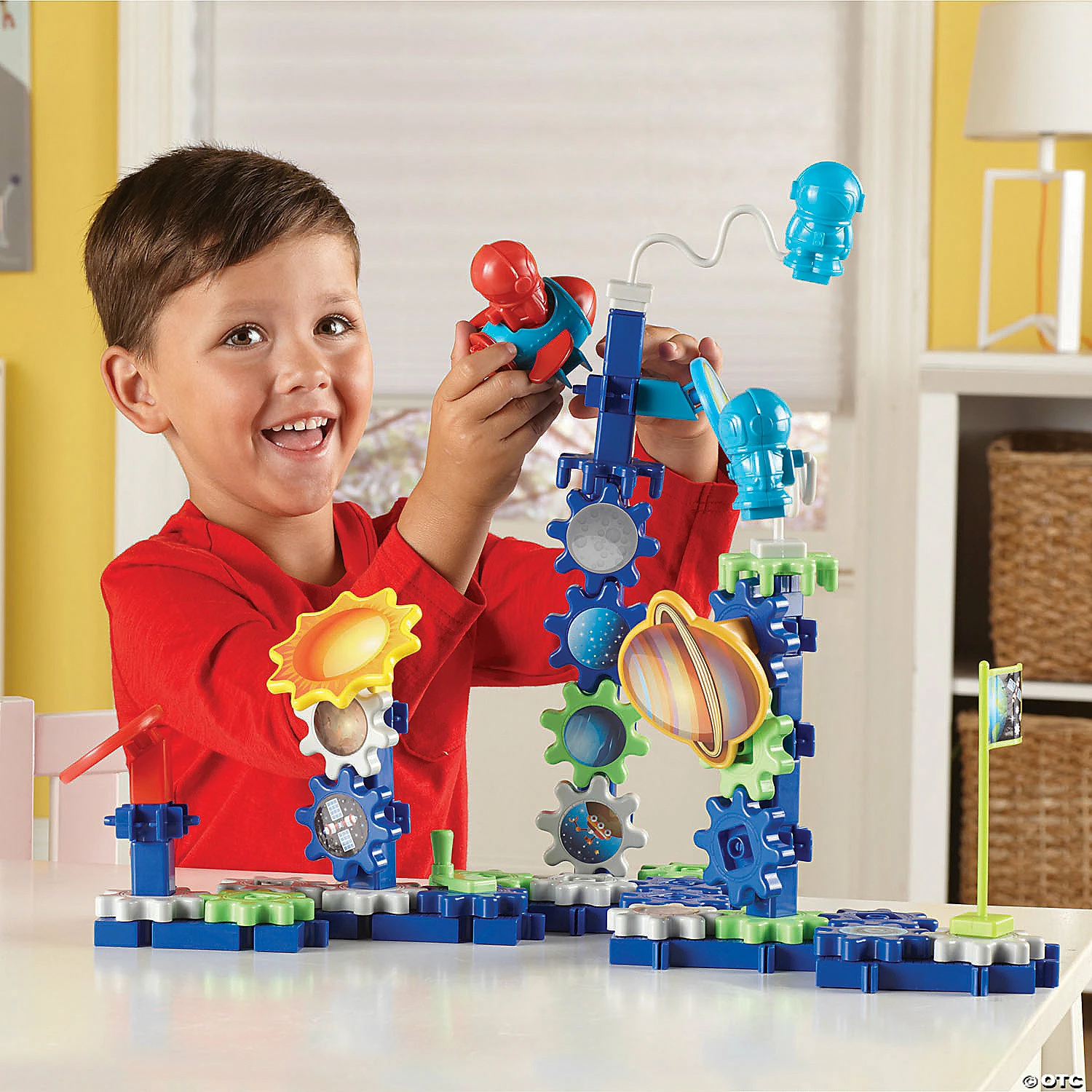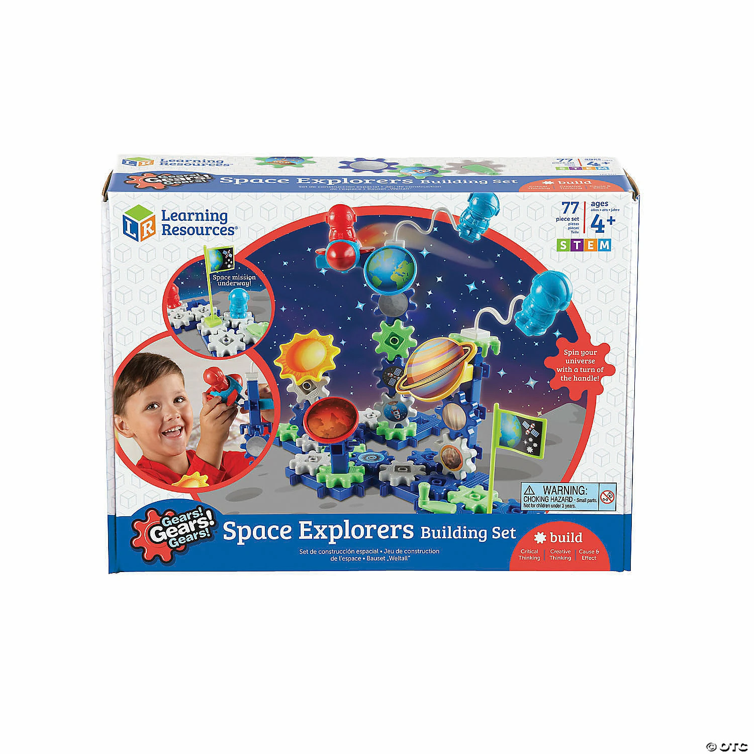 Gear up for blast off with this Gears! Gears! Gears! Space Explorers Building Set! Little ones with a knack for space and all things intergalactic will enjoy the endless ways of piecing this set together. Includes astronauts, planets, sun, spaceship, flag, colorful stickers and more to explore! Supports STEM by introducing sorting, grouping, counting, design and construction. Suitable for Pre-K and up and ages 4+. Plastic. (77 pcs. per set) Storage box, 14-1/2″ x 11″ x 4″. © Learning Resources