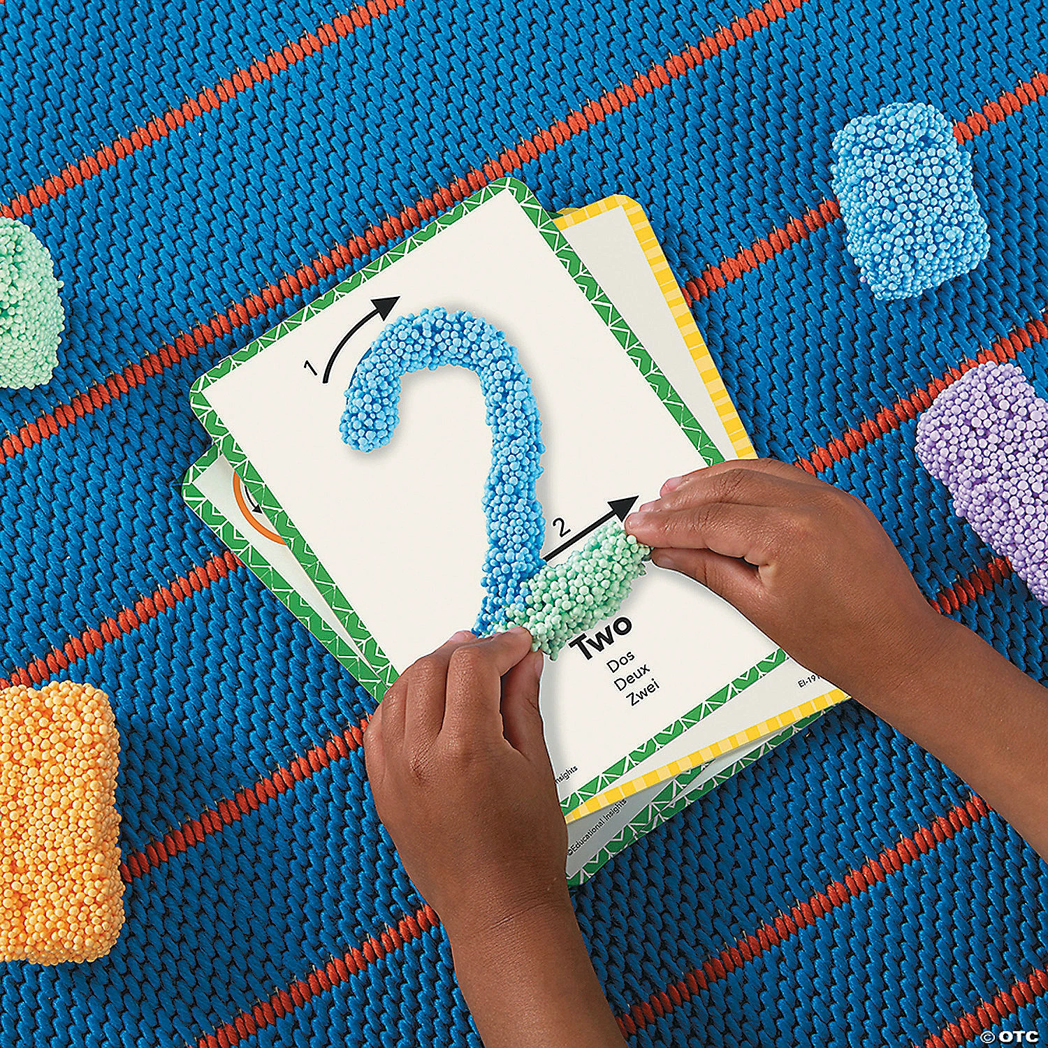 Give your little one a hands-on introduction to numbers and shapes with this Playfoam set! A great addition to your toddler’s playroom, this educational play set lets little ones sculpt and shape the foam into numbers and shapes, as well as anything else your little learner can dream up! Includes 8 assorted color Playfoam bricks and 13 double-sided 5″ x 7″ cards. Safe and non-toxic. Foam. (21 pcs. per set) Box, 13 1/4″ x 2″ x 9 3/4″. © Educational Insights