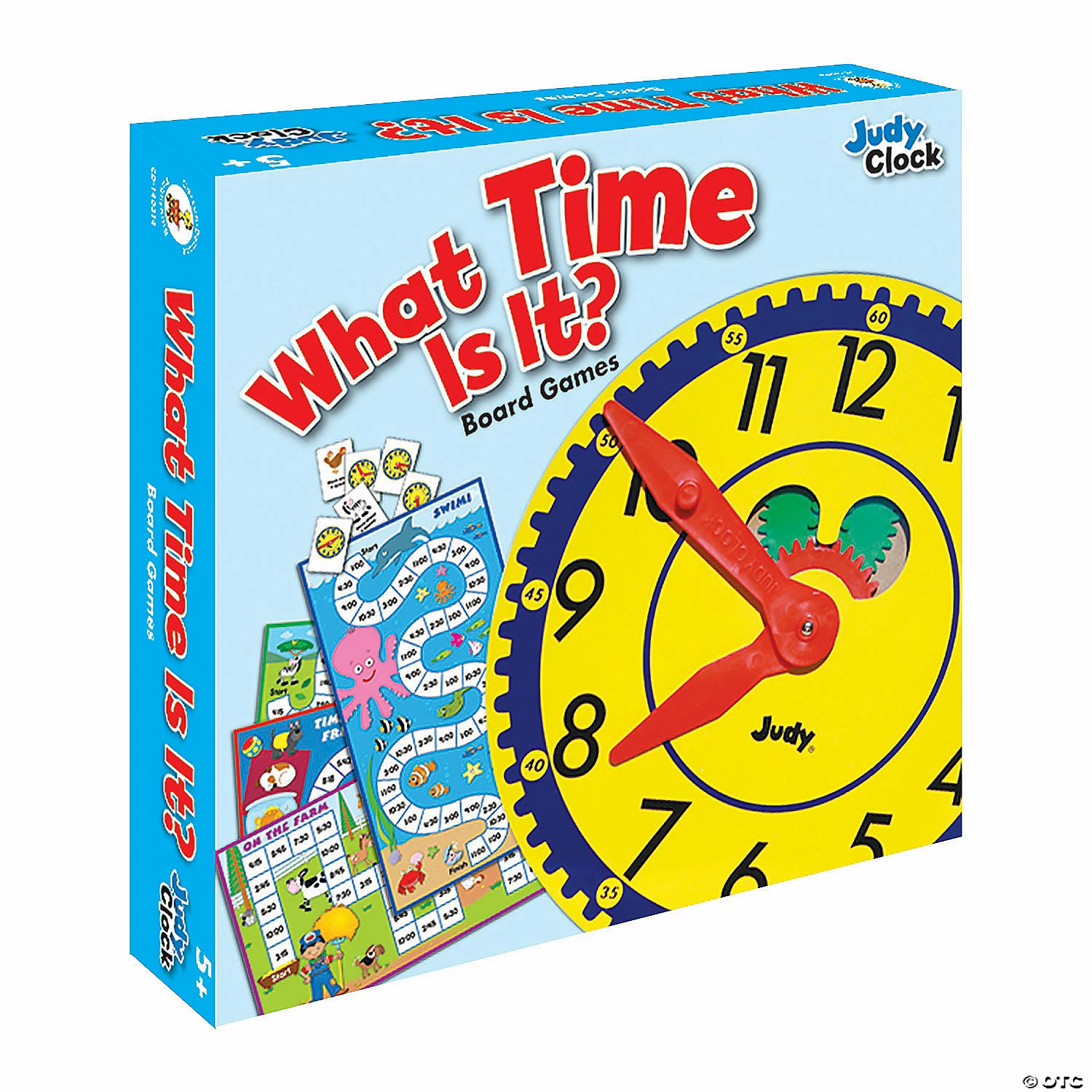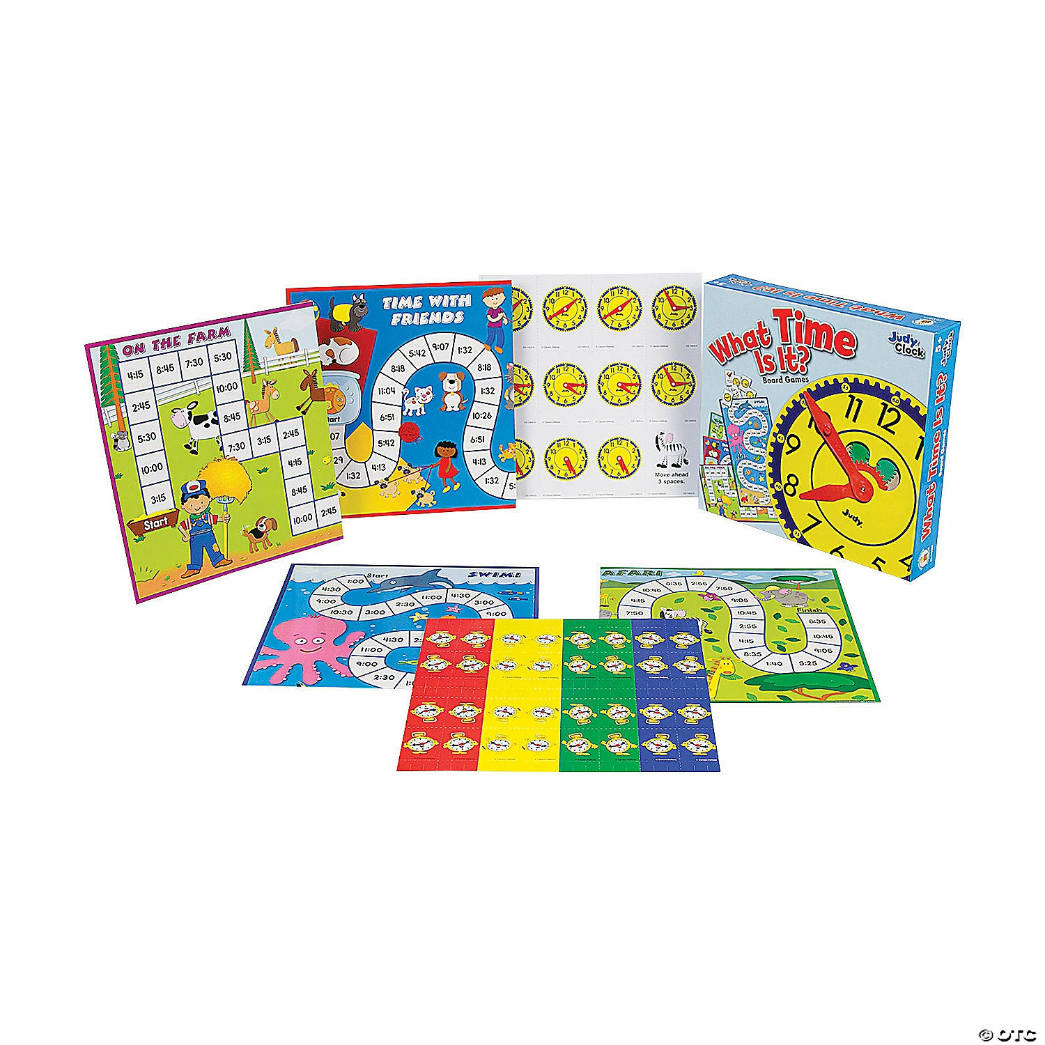 Judy Clockβs game, What Time is It? provides students kindergarten through grade 2 with a unique and fun approach to mastering basic time-telling skills! Aligned to Common Core State Standards, each game board is illustrated with bright, eye-catching colors and easy-to-read game cards! With four different games to play, this set is perfect for center activities or small group instruction. This set includes 4 game boards, 96 game cards and 16 player pieces and is designed for 2-4 players.