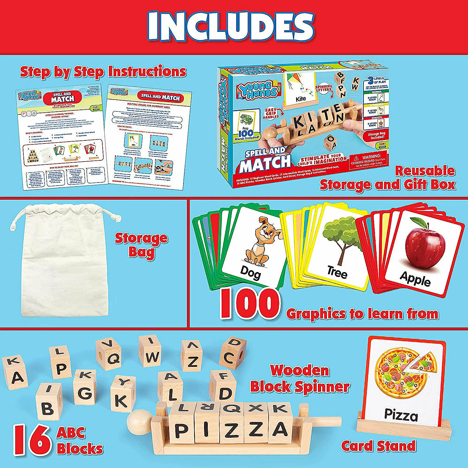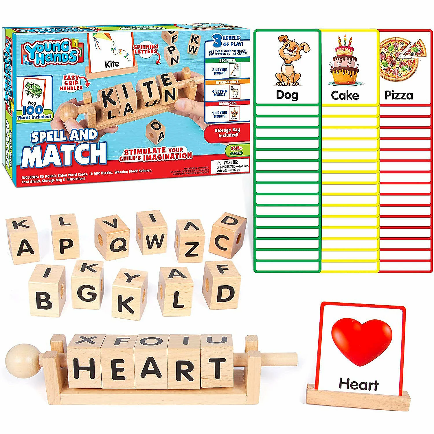 Best Sale β Young Hands Wooden Reading Blocks – Spin, Spell & Match Words Age 3+ π